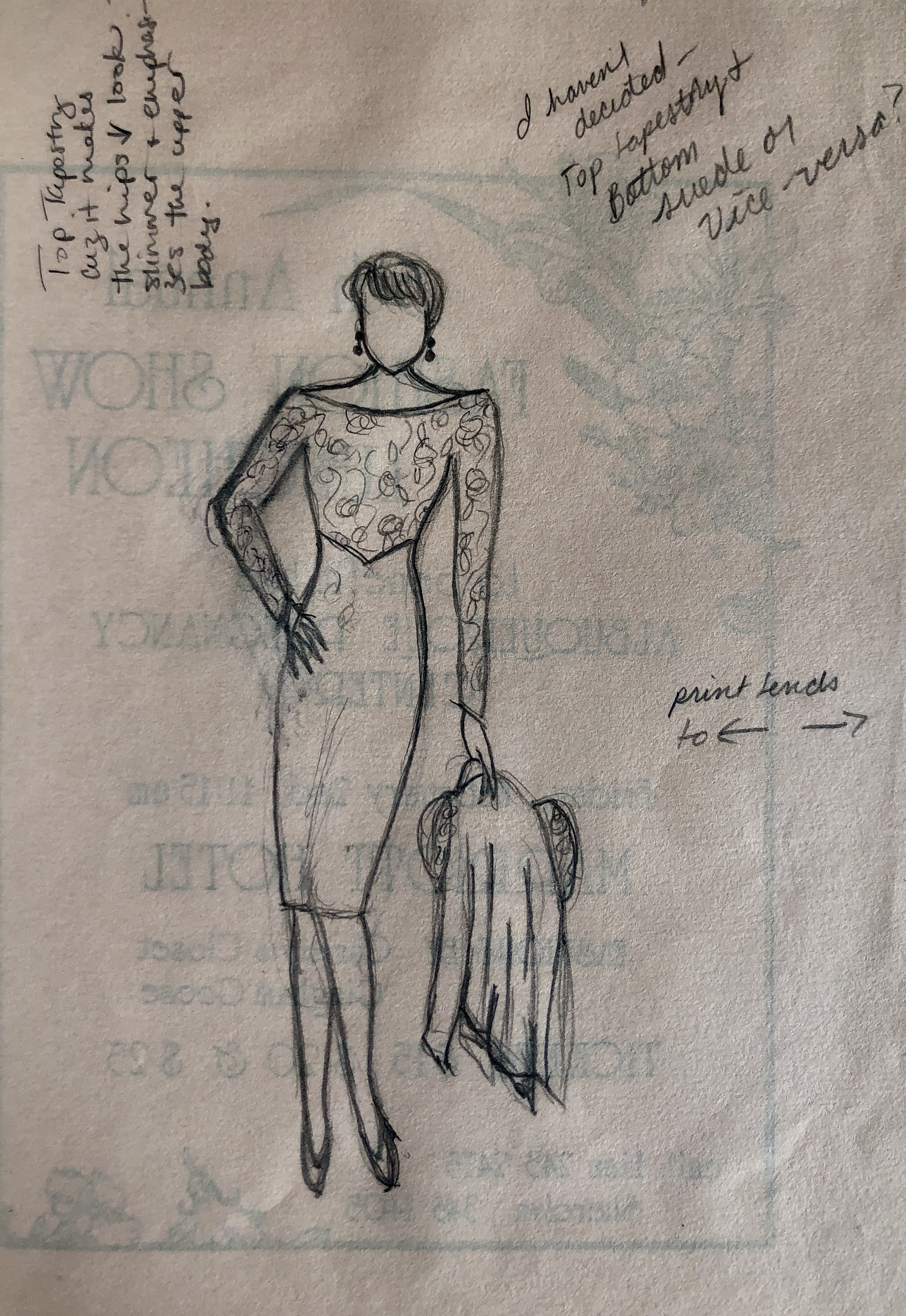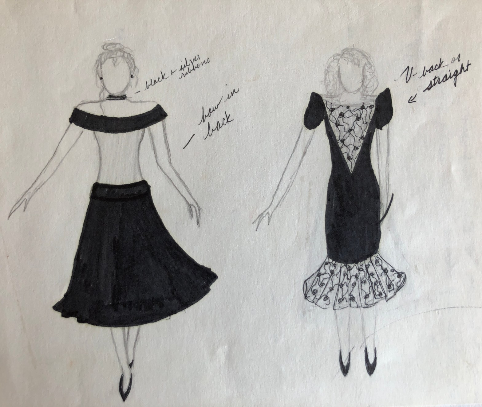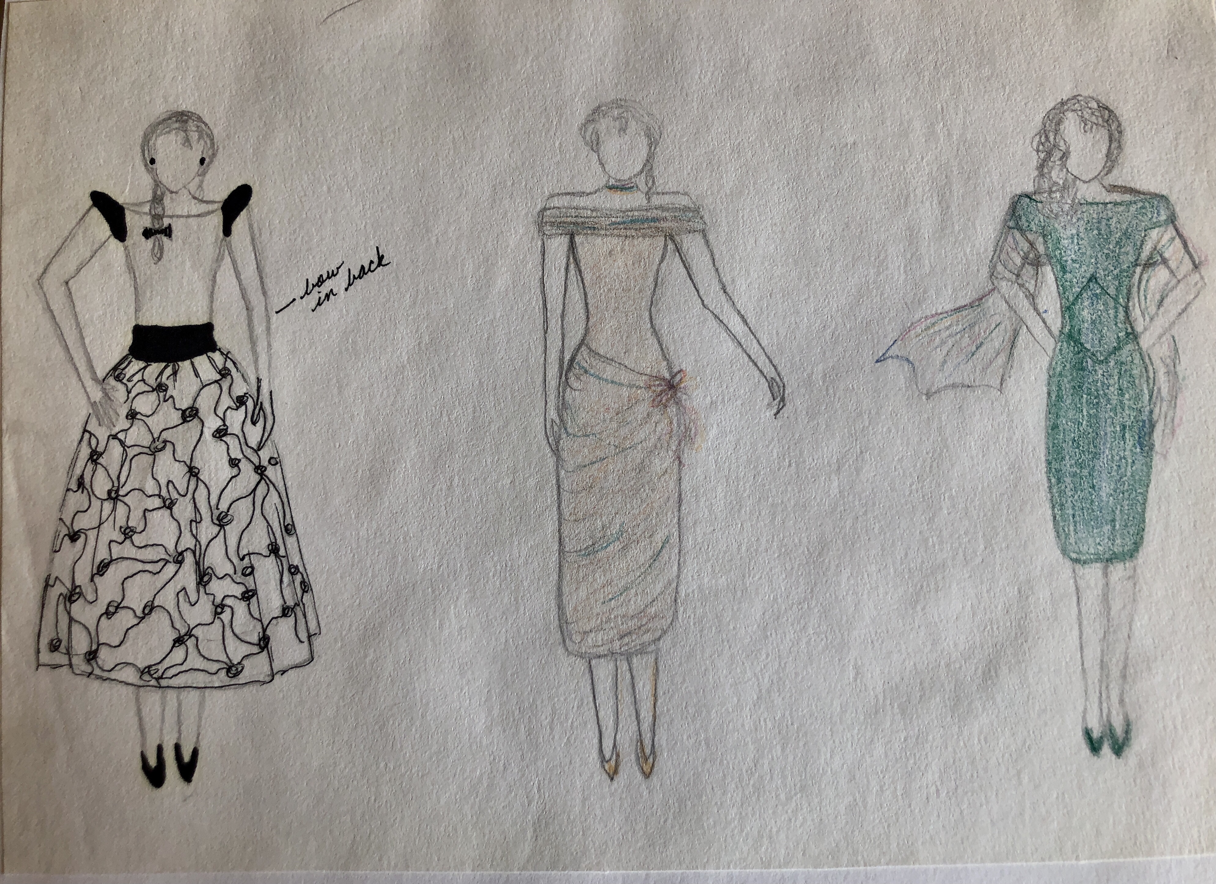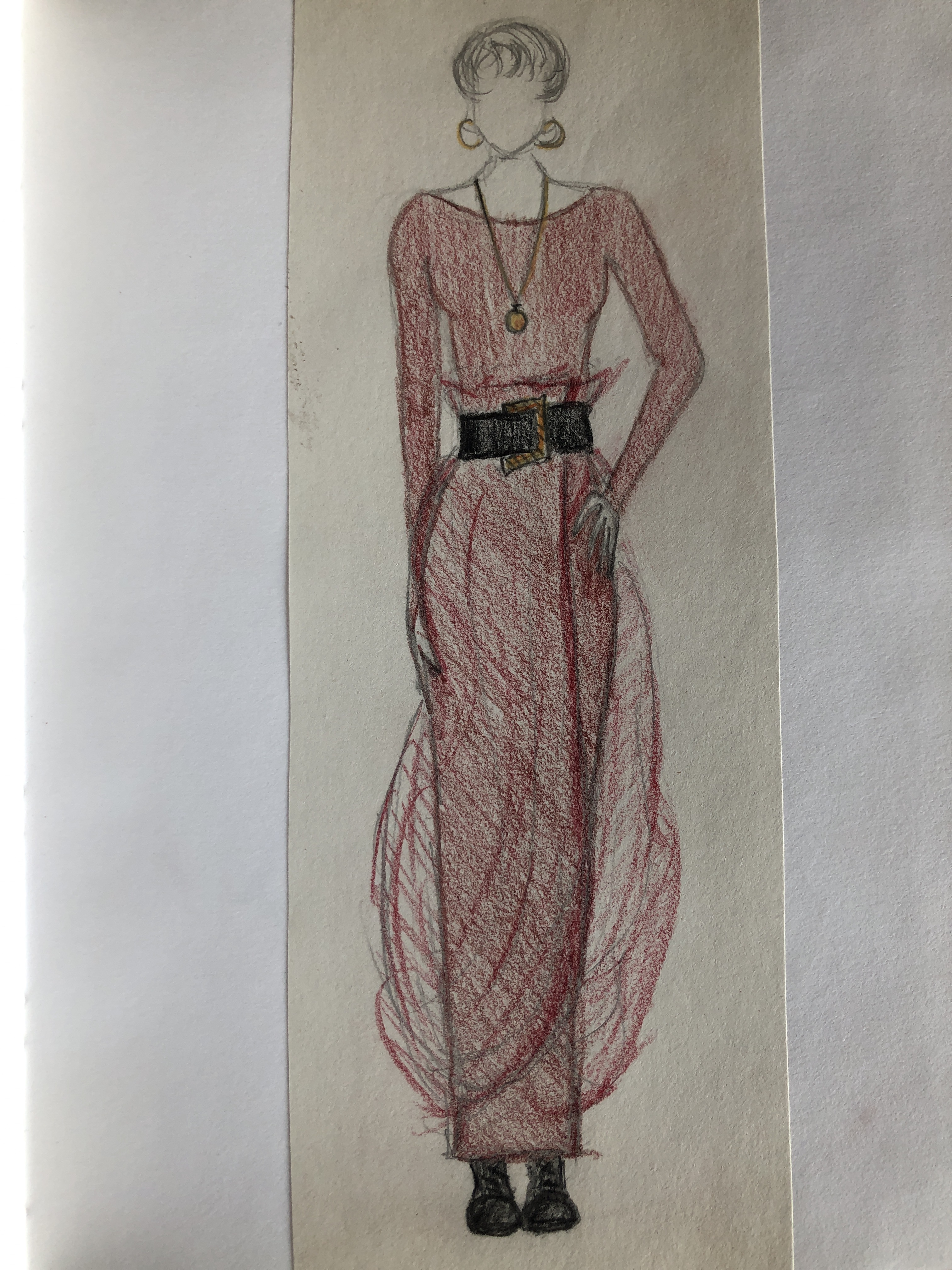But! It wasn’t always such a depressing picture, dear reader. Behold: I went back through some old sketch books and found oodles of fashion sketches I made in my teens and early twenties. I don’t know why I was doing it: I couldn’t sew at that point (and am still basically a utility sewer) and never managed to talk my mom (an amazing seamstress) into making any of these designs for me. But here we have it.