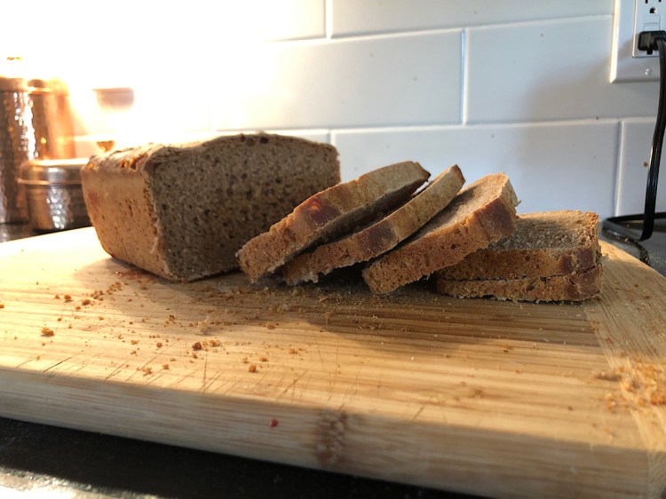 Look! I made another brick…. sourdough whole wheat sandwich loaf from A Perfect Loaf (I’m giving you that link so you can see what it’s supposed to look like. Oh well, tastes like bread.