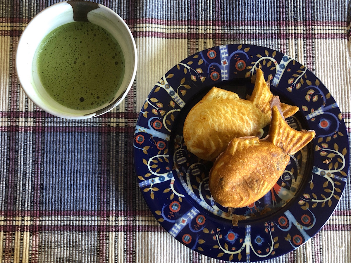Anyway, I tried to make them today. Went pretty well. My first batch were a bit overcooked and my second a bit under—par for the course. But they were sweet and fluffy and perfectly complemented the strong herbal bitterness of a bowl of matcha. I like this recipe for taiyaki and this one for bungeoppang.