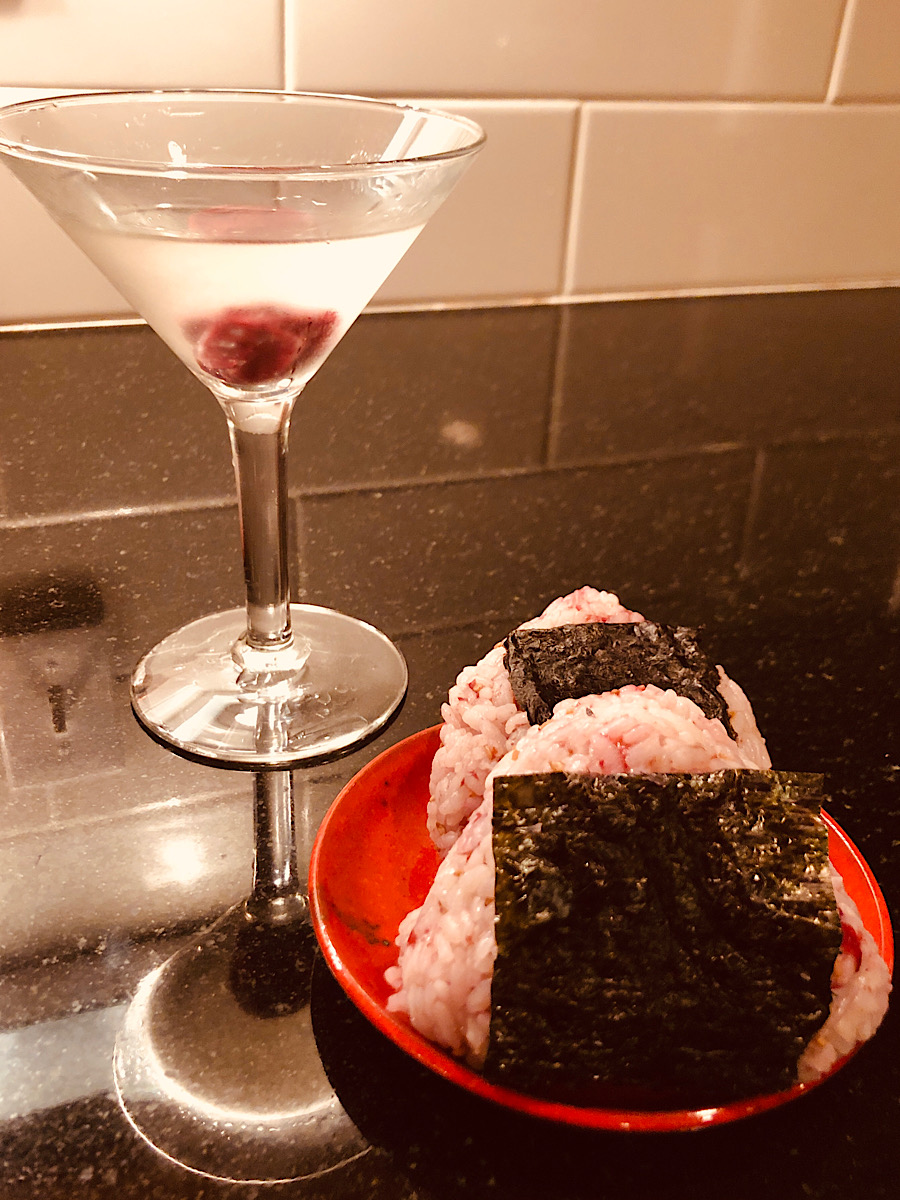 After they sort of equilibrated for a month, I made two different dishes with them: ume onigiri and an ume martini.
