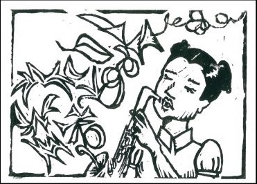 I started doing papercuts after I tried linocuts for a children’s book project that Malena and I worked on. I found I could get much the same effect without the hassle of setting up a reliable printing apparatus, and I enjoyed the challenge of having to keep everything connected. Plus, I had loved cutting things out since I was a kid: paper dolls, model houses, etc. So the work itself is very satisfying, and I now do a lot of them–for Christmas cards, friends’ new babies, etc. Here’s the original linocut I did for the cover of Ruby, our book project. And we set up the book to purchase in paperback on Amazon’s print-on-demand store, so you can see the rest of the papercuts in it there.