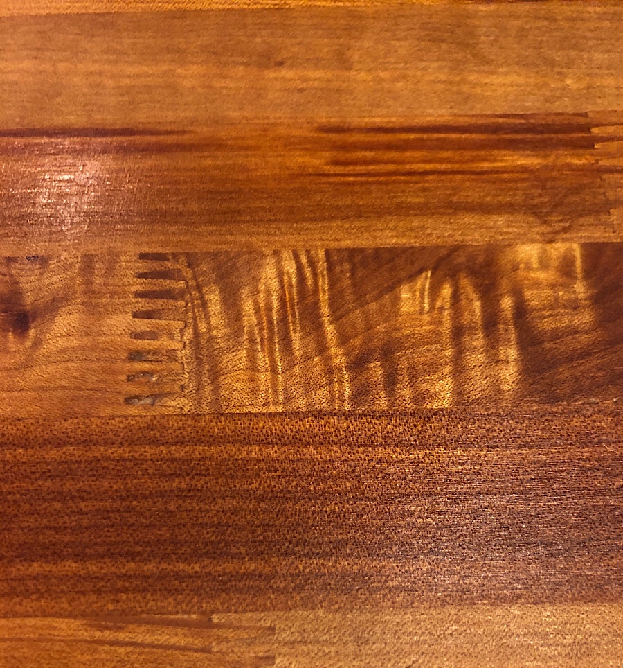 Or garlic smells…. My sister just refinished this beautiful red maple cutting board for me out of a chunk of the countertop of my old house. The story behind those counter tops is interesting: they’re the old beds from the county jail. They had to get rid of them because folks who were drunk were rolling off them and hurting themselves, so the county replaced them with beds with a railing. But the contractor who did the demo didn’t have the heart to trash like 125 slabs of 3-inch butcher-block red maple, so they just leaned a couple up outside their office with an “inquire within” sign. My yoga studio at the time was just upstairs from their office, and when I came down after class one day during my kitchen remodel, there they were: $80 a 7-foot slab. I got my new countertops for $400 (well, plus all the sawblades and hours it took my contractor to rip 3-inch cross-cut maple butcher block). And we left the bottoms intact so you could still see the graffiti the detainees etched in there with ballpoint pens (not having anything sharper on them). It was surprisingly clean—kind of along the lines of “I miss Mom.” My cutting board has the faint trace of a bird on the bottom that we didn’t sand all the way out on purpose.