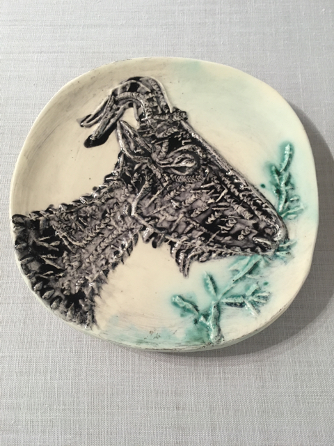 I’ve never been a fan of Picasso’s paintings, certainly not of his treatment of women, but I surprised myself by finding his ceramics utterly charming when I first encountered them in the Albertina in Vienna several years ago (where I took the picture of the goat dish above). They’re joyful, whimsical even, but paradoxically spare and elegant in the way they use space and texture to achieve these effects. They don’t feel like he’s trying too hard, which is how his paintings always struck me. Perhaps not coincidentally, by and large the ceramics treat natural and mystical themes rather than reworking his obsession with the female nude. Maybe he was somehow able to draw on a cleaner source of artistic energy when he worked in clay, rather than “ble[eding] dry” the women in his life. There’s a new exhibition coming on at the Nevada Museum of Art if you’d like to see a few more examples of Picasso’s ceramics.