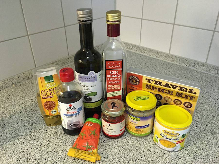 I’ve done a couple of extended stays abroad for research and community work, and as I love to cook, this has presented me with the problem of how I can do so without investing in an expensive pantry that I am likely to have to throw out (or rehome with friends/neighbors). So, I’ve come up with a capsule pantry that allows me a fair amount of range in the kinds of food I can prepare: