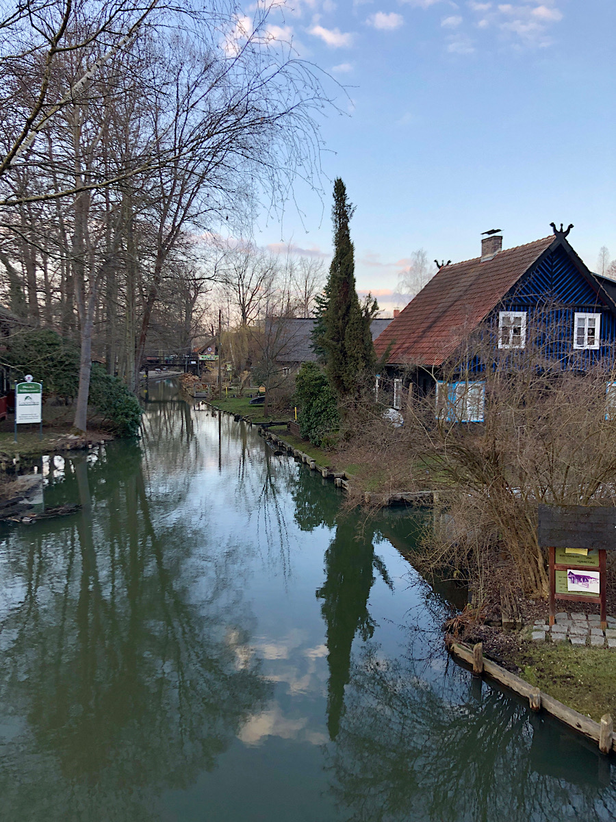 My friend and colleague here Birgit had a delayed 50th-birthday celebration with a group of friends out in the Spreewald (delayed because she got omicron right before her birthday! She was boosted and thus had a typically mild infection, but of course she was terribly disappointed). The Spreewald is a marshy oak, alder, and birch forest that grows in and around the source of the Spree River. Enterprising Zorbish/Wendish inhabitants drained the marsh in the 18th and 19th centuries by building a network of canals that allowed them to build small crofts on what are essentially islands. Today, the Spreewald, particularly Lübbenau, is a destination for Berliners seeking a weekend of canoeing or biking through peaceful groves past fairytale cottages and then stopping off for a beer or cucumber schnapps and pickles (in fine German style, there is even a pickle museum).