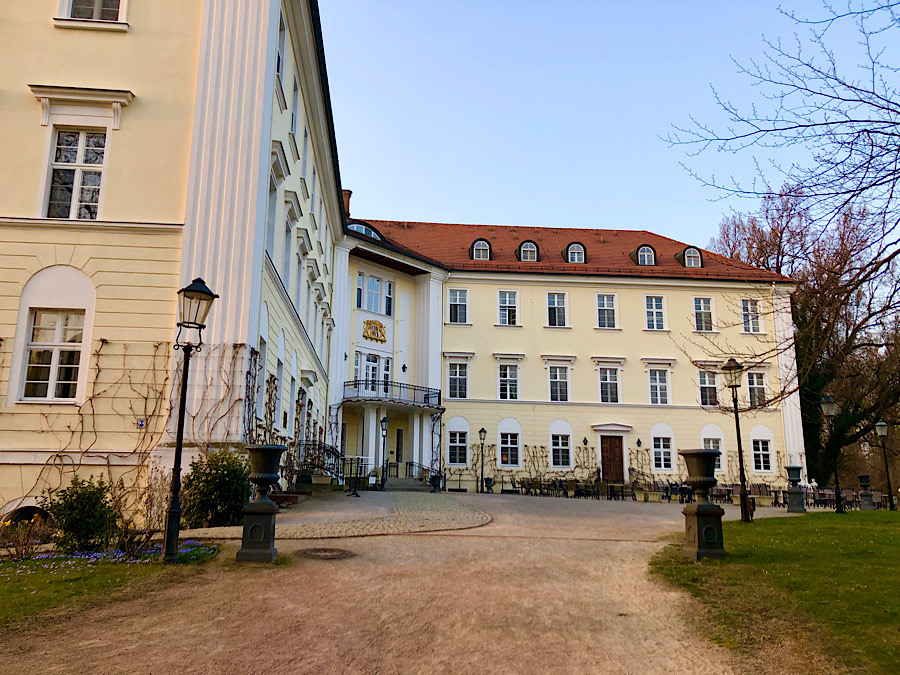 Friday night we paid a final visit to Schloss Lübbenau, built in the 19th century on the site of the family seat of one Count von Lynar or another since the 17th century. Most dramatically, it was home to Friedrich Wilhelm Graf von Lynar, a co-conspirator in one of the assassination plots against Hitler; he was executed in 1944, and his family only recently had the property restored to them after the fall of the Wall. It’s now a luxury hotel with a very nice park and orangerie and a clubby bar, where we had a drink before heading to a dinner of venison goulasch and kartoffelklöße (potato dumplings) at Restaurant Suez.