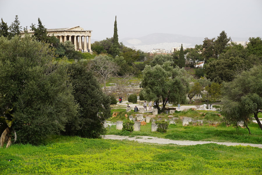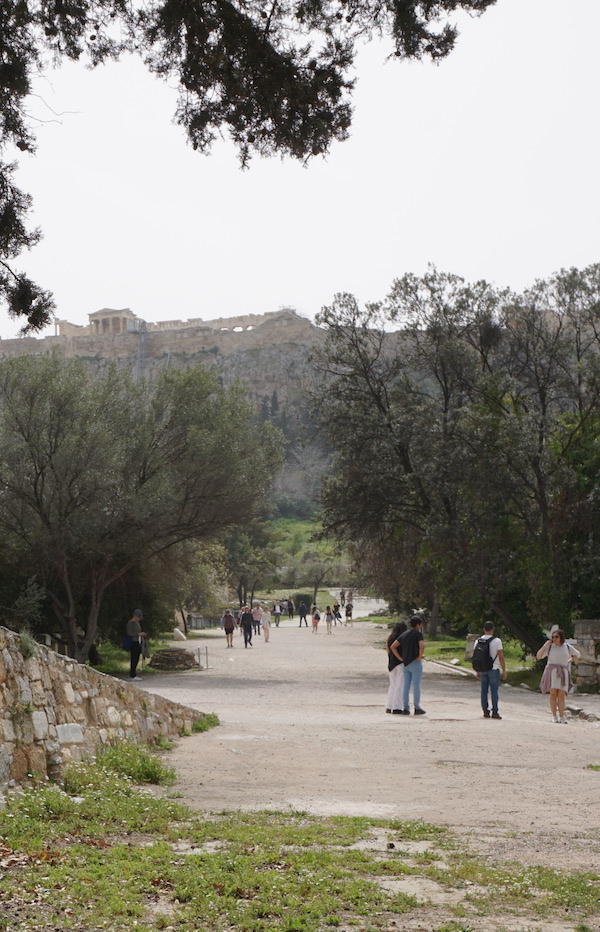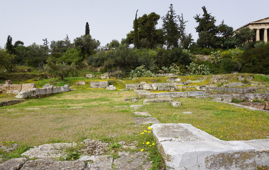 For rhetoricians, the ancient Greek agora is basically our Mecca–it’s where it all went down. Gorgias’s “Encomium of Helen” was declaimed here; Socrates’s trial took place at the bouleuterion; Plato and Isocrates and Aristotle all recruited students for their schools while perambulating the shady stoa or public arcades; the ekklesia voted here; oracles were interpreted in public here, and so on and so on.