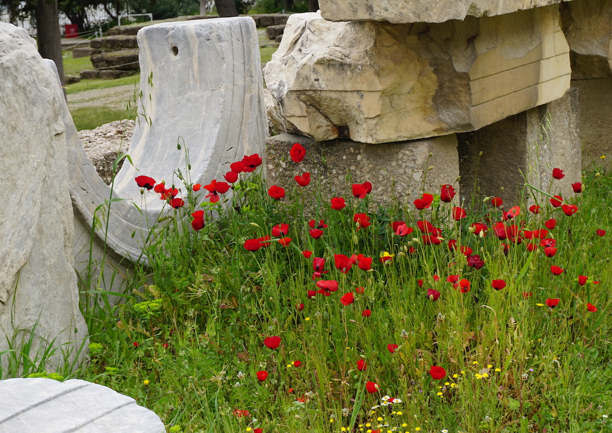 The Parthenon looks more elegant from a distance is what I can say about the experience of tiptoeing around all the scaffolding to get a good picture, as well as the squadron of Athenian women whose sole job it is to yell in multiple languages at foreigners not to touch things–more on that tomorrow. Their lungs certainly got a workout on the Acropolis, where every stone you trip over is like 2,500 years old at a minimum. I found the old temple to Athena more attractive, but really the whole time my eyes were drawn off the edge of the Acropolis north toward the Hephaestaion and the Agora.