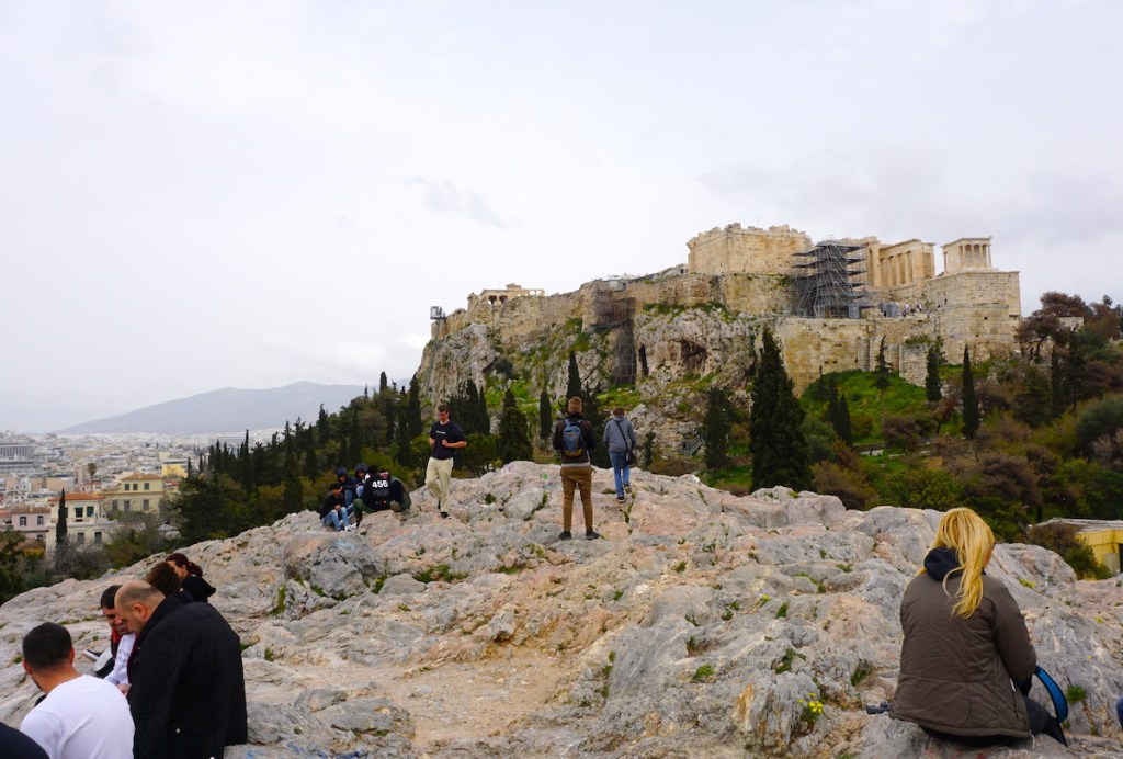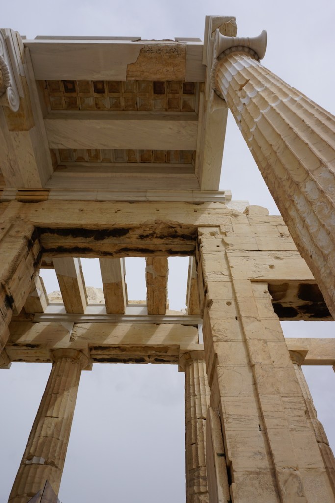 The most impressive part of the Acropolis to me was actually the Propylaea, the epic colonnaded entrance Pericles built for the Acropolis in the 430s BC. It was sort of an ancient TSA as various classes of people (ritually unclean people, runaway slaves, convicts, etc.) were not allowed to enter the temple complex, where the Treasury of the Delian League was kept…and from which Pericles ironically embezzled to build the Propylaea. But just thinking about the Propylaea rhetorically–which the Greeks always did, as they didn’t draw the same distinctions between physical and mental spaces that we do–it does a fantastic job of making you feel small and overawed, visually bringing down upon you the weight of Athenian authority.