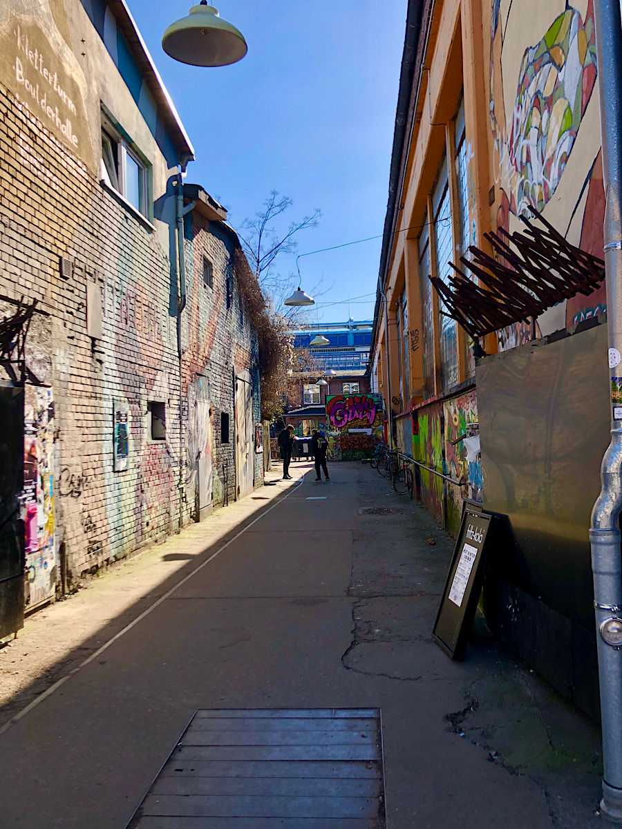 Then, there’s the district around Der Kegel: RAW Gelände. This was a former railway sideyard that was colonized by squatters during reunification. Then, it was turned into a protected cultural site by the city, with its own self-governing board. It’s got some important street art as well as several galleries. A couple of cool clubs like Astra Kulturhaus cropped up; there’s a skate rink as well, and a load of late-night döner and beer kiosks, etc. At night it’s a huge party area, but during the day it’s sort of a calm spot in the chaos around Warschauer Station. I love to stop and get a cappuccino at Kult after I finish up at the gym and sit in the sun and look at this big, gorgeous poplar tree across the alley.