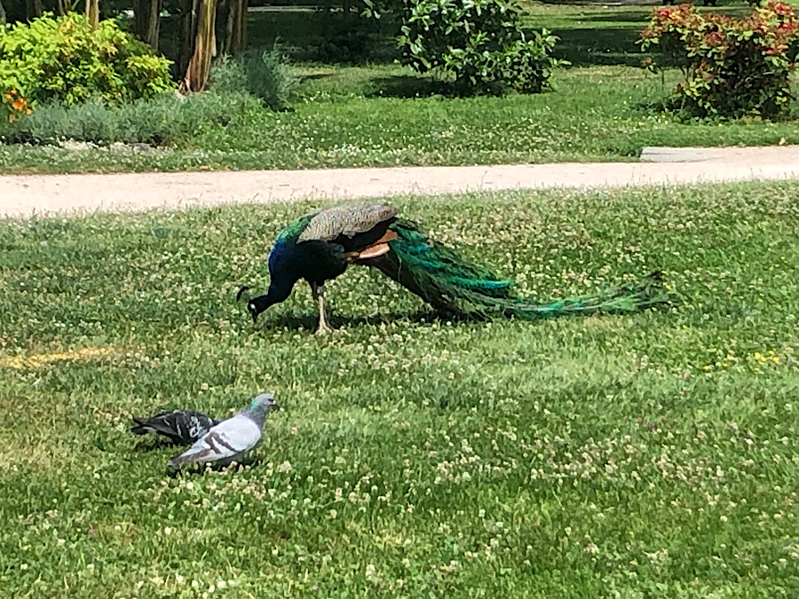 It was a relief to get back to Tarbes, though it was still busy there as it was Mother’s Day weekend in France. On the main shopping street, well-dressed mother-daughter pairs shopped for jewelry, cosmetics, etc. Men bustling out of florists’ shops with arms full of flowers every few minutes. The Jardin du Massey was a welcome respite from the hustle with its sweeping pelouses (untrodden, as lawns are generally to look at, not to sit on in France), towering cedars, and multicolored peacocks. Too soon, it was time to head back to the airport in Toulouse, but it’s always too soon….