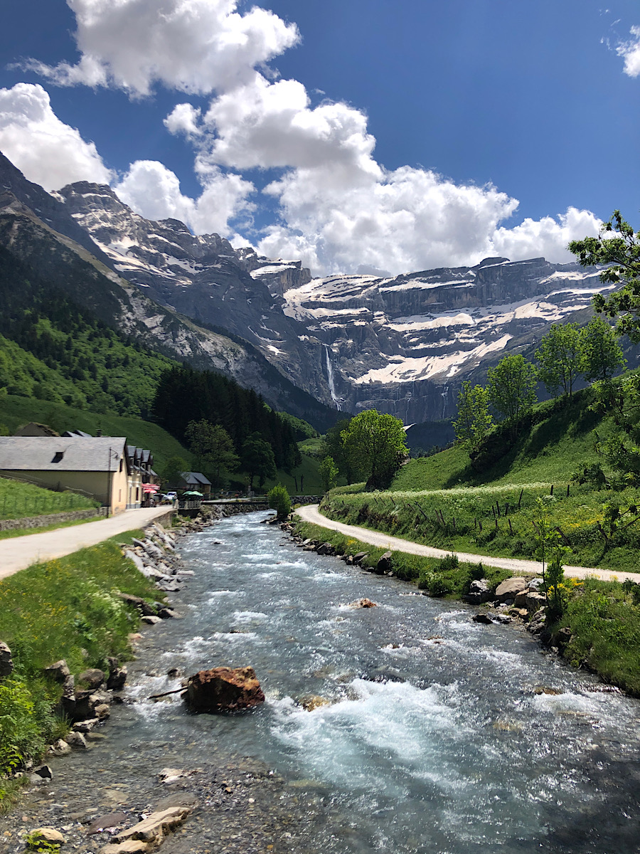 I visited my friend Marie this weekend at her new place in Tarbes, and since the weather favored us, we were able to take a drive up the valley to the Col du Tourmalet, alongside riders training for the Tour de France (either professionally or enthusiastically). Then, we went down the west side of the col and up into the jaw-dropping Cirque du Gavarnie with its vestigial glaciers.