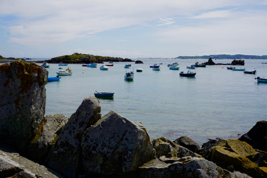 This was our final day on Guernsey, transitioning back to (where else?) Saint-Malo. Although clouds threatened in the morning, the weather continued to hold for us. We started the day out a bit cheekily with tea and Hob Nobs on a little rock point on the north shore of the island you can’t reach at high tide. We also checked out one of the several Neolithic sites on the island–a “passage tomb” made of enormous rock slabs perched on pillars. This one apparently had seen at least 3 epochs of burials. Guernsey originally also hosted several megaliths, but they were mostly cannibalized by enterprising stone masons starting in the 18th century (easier than quarrying!).