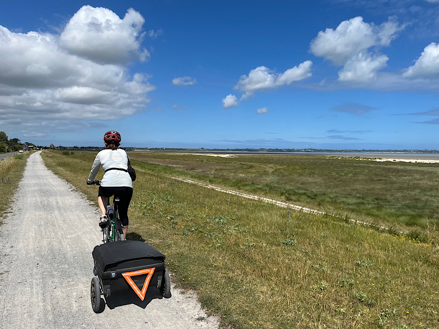 We lost the coast when we mounted the Cancale peninsula headland, but the riding was still very pleasant, winding through golden wheatfields edged with poppies past craggy stands of cypress and rustic stone farmhouses. We swung back to the coast a few bays before Saint-Malo at Rocheneuf and enjoyed the sight of sailboats skimming across the waves in the distance as well as the wide bikelane that led us to our stay at Hôtel Le Beaufort at Sillon Beach. I had splurged on a beachside terrace room for our last night, and we toasted our successful tour with our last bottle of cider from M. le Girard on the terrace under the watchful eye of a young seagull we nicknamed Vern.