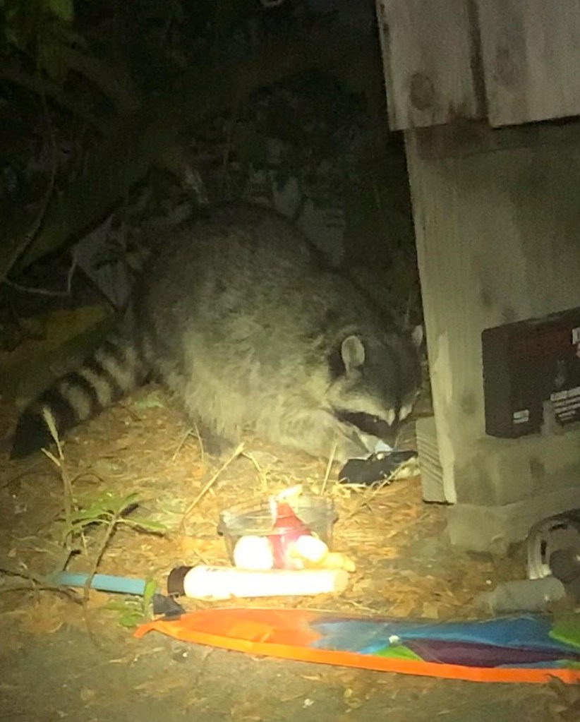 We’ve been camping on the coast now for I think 4 years for my friend Steph’s birthday. This time we got to introduce her dog, Mabel, to the ocean, which was really fun (though I think Mabel found it a bit overwhelming; Wright’s Beach is not a swimming beach). We foraged seaweed at Shell Beach again and got thoroughly smoked while cooking our meals over an open fire, which I’m obsessed with and which is always a somewhat fraught and dramatic experience: this year my friend Marshall and I worked *really* hard on making a pineapple upside-down cake in a cast-iron skillet set on the coals. Believe it or not, it turned out great…until a raccoon ate most of it during the night because we forgot to lock the raccoon-proof pantry box at the campsite. Cassandra named him Stanley. She even managed to snap a pic of Stanley with his little grabby mitts full of pineapple. I guess the universe was worried we were going to get big heads about what great campfire cooks we were becoming and sent us Stanley to keep us humble. Thanks, Stanley.