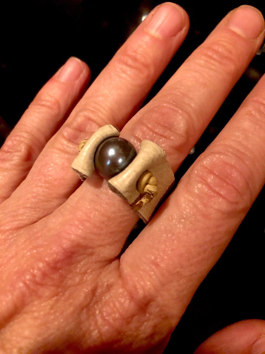 I was pretty sure this ring was lost until it turned up yesterday morning in the pocket of a pair of work pants I hadn’t worn since last fall, I think–(but who knows at this point in the pandemic?). I was ridiculously happy–not because I love the ring so much (I do love the ring; it’s deerskin and black pearl, and I bought it from a woman at the Lihue Community Market on Kauai) but because I hate losing things.