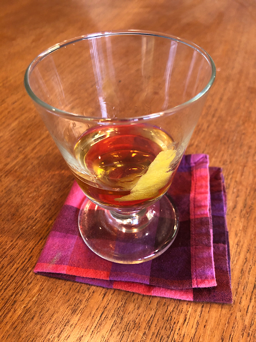 Rinse your glass with absinthe, swirl the whiskey and maple syrup together, top with the Peychaud’s, and plop in the lemon peel. I drink this room temperature, but if you want it cold, put in an ice cube and laissez les bons temps roulez!