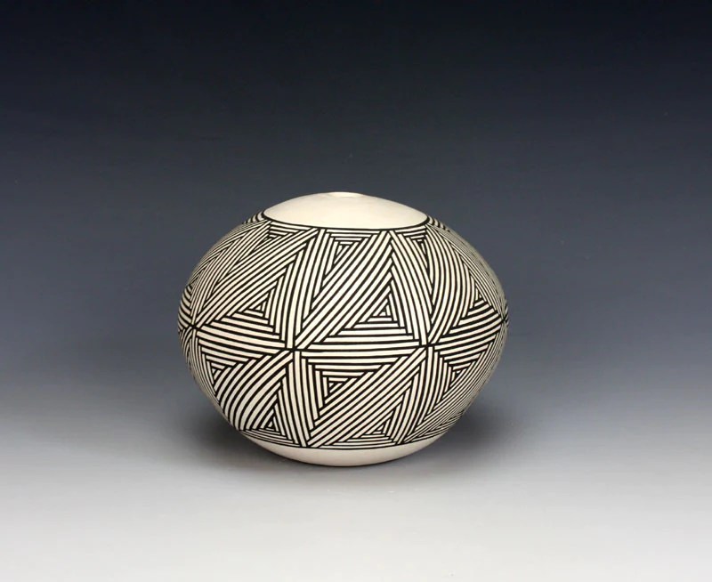 I’m starting a series on Pueblo pottery: while I won’t be able to do all 19 pueblos here, I’ll highlight my favorite styles, starting with Ácoma. I love the monochromatic color scheme and the geometric decorations. The rounded shapes also feel either very old (cf. Mimbres) or very modern to me as well.