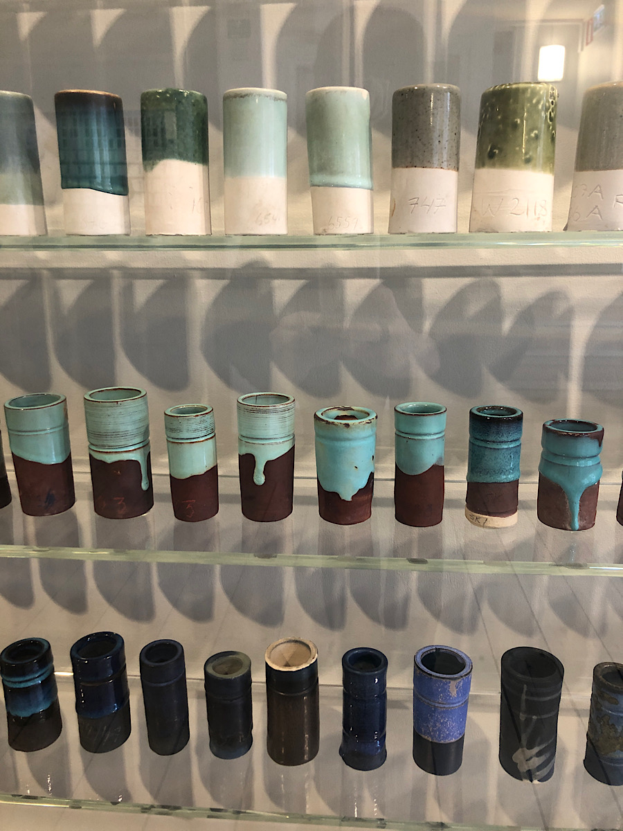 While I was in Stockholm, we took a bus out to Gustavsberg to visit the old porcelain factory and museum. Gustavsberg has been around since the early 1800s, when it mostly produced knock-offs of popular Chinese ceramics. But then it shifted into Scandinavian designs, and in the 20th century it fostered a stable of gifted mid-century ceramicists including Stig Lindberg, Lisa Larsen, and Wilhelm Kage. It also makes practical ceramics like toilets and sinks; I got a kick out of identifying their wares in the various houses and restaurants we visited in Stockholm…. We got to see an exhibit of contemporary ceramics at the museum (as well as the glaze test samples pictured above) and then do some shopping at their factory store and again around the corner at an outlet with Iittala, Rörstrand, and other Nordic tableware.
