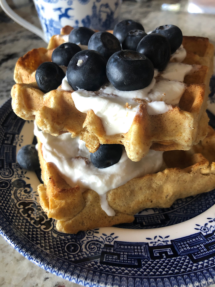 From Heidi Swanson’s venerable blog. A little rose water in the whipped cream goes a long way. I like that you don’t have to rest these overnight in the fridge or separate the egg yolks and whites. They’re really savory and satisfying–and not bad for you either with all the whole grain action.