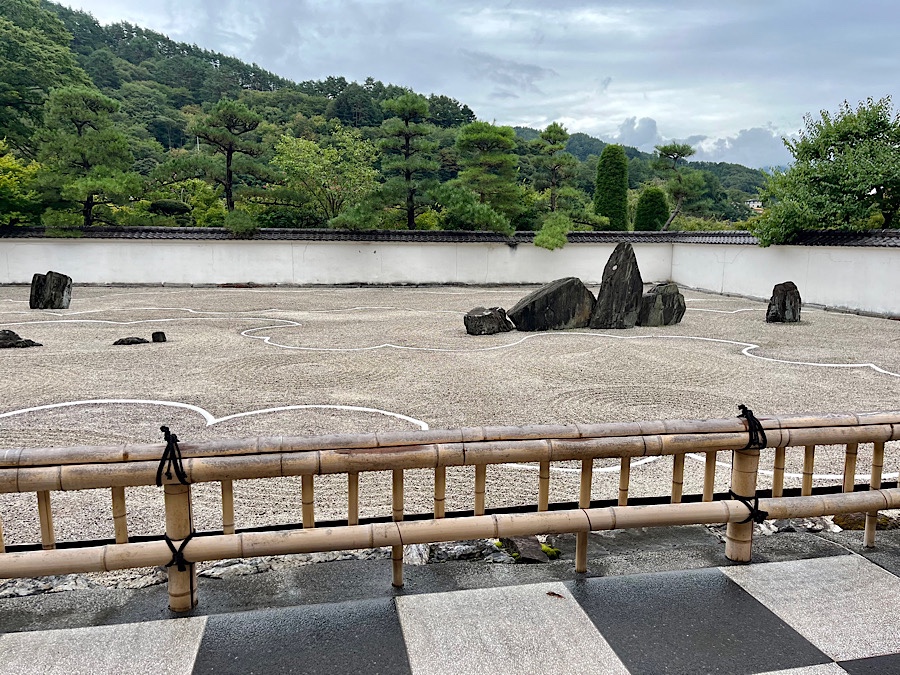 The trail let out at one of the day’s real highlights: Kozen-ji, a small but beautiful temple complex featuring Asia’s largest dry Zen garden, built in the 1960s by Mirei Shigemori, as well as four other gardens (the pond garden is pictured above) and a museum with various temple treasures, including some very nice lacquerware and screens and a paneled ceiling from the 17th century painted with portraits of seasonal flowers. ALSO, a lock of my BF Naka-chan’s hair is buried in the cemetery at Kozenji: in his final battle against not only the remaining Taira retainers but also his traitorous Minamoto cousins, his horse became inextricably mired in river mud as his enemies bore down on him from the hills. Seeing the futility of his situation, he cut off a lock of his hair and tasked his lover, the woman warrior Tomoe Gozen, with carrying it to Kozen-ji. He tried to convince his blood brother Kanehira to flee as well, but Kanehira refused, and the two of them fought to their deaths there in Ōmi, where Yoshinaka is buried–most of him at any rate; his cousins may have made off with his head. I sound unsure about that because we got all this information by Google translating the sign at his gravesite–which further and helpfully informed us that he had died at the age of 2 from a strange illness and then again at age 11 from a fall from a horse. So really you can choose your own adventure where Naka-chan’s concerned, and it’ll be hard to prove you wrong since every landmark in the valley is supposedly the site of some heroic (or perhaps “heretic”–the translations were also unclear on this point) achievement on his part.