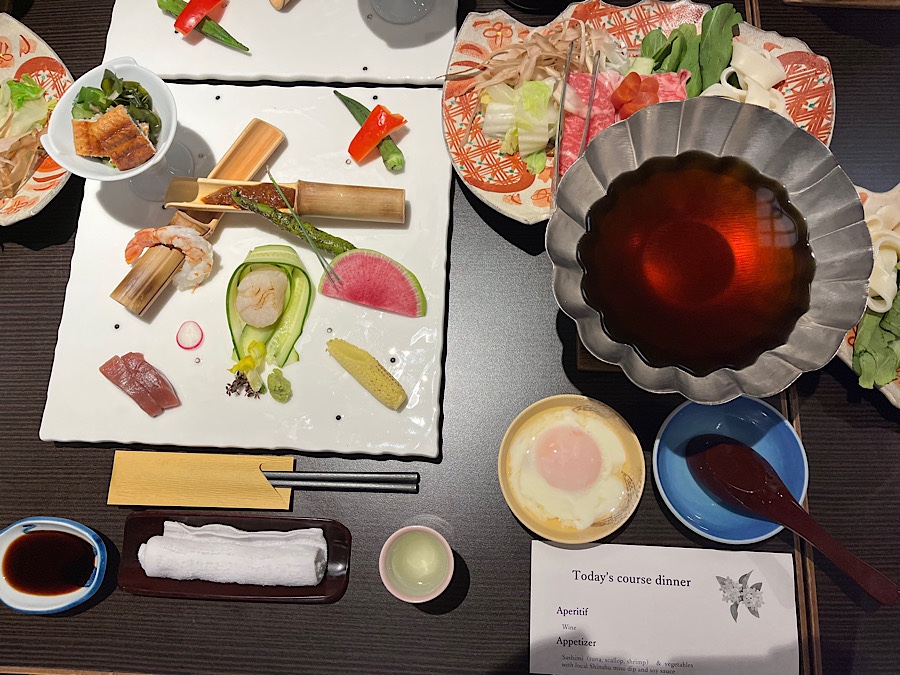 The staff had kindly procured a delicious little strawberry shortcake cake for Cheryl’s birthday, so we capped off a fantastic day with another big, delicious kaiseki dinner and then cake and sake. We finished off the second bottle in the lounge as we flipped through their library of books on art and pop music and planned our next day’s hike out of the valley. There was still a lot to do in Kiso-Fukushima that we missed; I would definitely return to explore more around the Japanese Alps, the lakes, and the highlands where they used to raise native Japanese horses for the Nakasendo trade and for samurai to ride–and still do. Onyado Tsutaya has a sister inn up in the highland that’s more high-end and less homey, but it would be fun to check out!