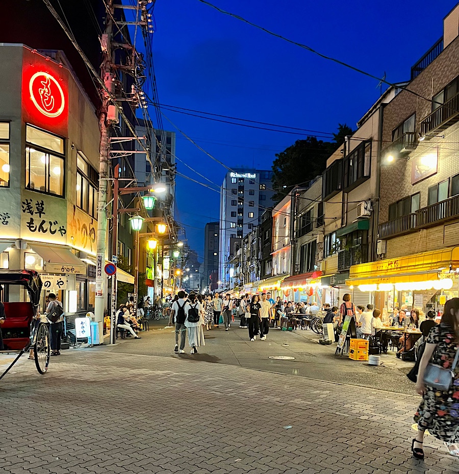 A couple more train changes, and we popped out at Asakusa Station with the Tokyo Skytree glowing above us, in and out of low clouds. The typhoon had passed through, but everything was still wet and steamy. Starving, we grabbed some döner kebab from a vendor on the corner (I swear it’s amazing all the places in the world that a good döner has saved my life) and checked into our cozy Airbnb apartment. After gobbling our sandwiches and cranking up the AC, we headed back out just a couple of blocks to Senso-ji and the traditional neighborhood around it. It had cooled down a bit, and flocks of girls were out giggling and eating ice cream in their rented yukata and sparkling hairpins. Most of the traditional shops were closed, but the eating streets were packed full of college kids enjoying the izakayas and the stores like Uniqlo that were still open. To these middle-aged ladies, bed was sounding better than yakitori and beer, so we headed home for showers and a good night’s sleep.