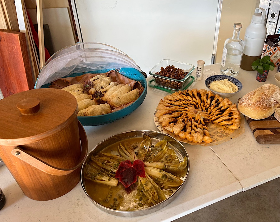 So far, there haven’t been too many deletes. This was this weekend’s menu*–for an apple-crushing day we did at my friend Martin’s house to make cider and brandy. The highlight was the tarte soleil from Smitten Kitchen in the middle there, which looks fussy to make but comes together very quickly with frozen puff pastry. The only change I would make is that the feta dip is delicious on its own (would be stellar with crudites) but it’s too salty on top of the tapenade filling in the tarte; so, next time I’ll switch that out for something sweeter and juicier, like an avocado or white bean dip.