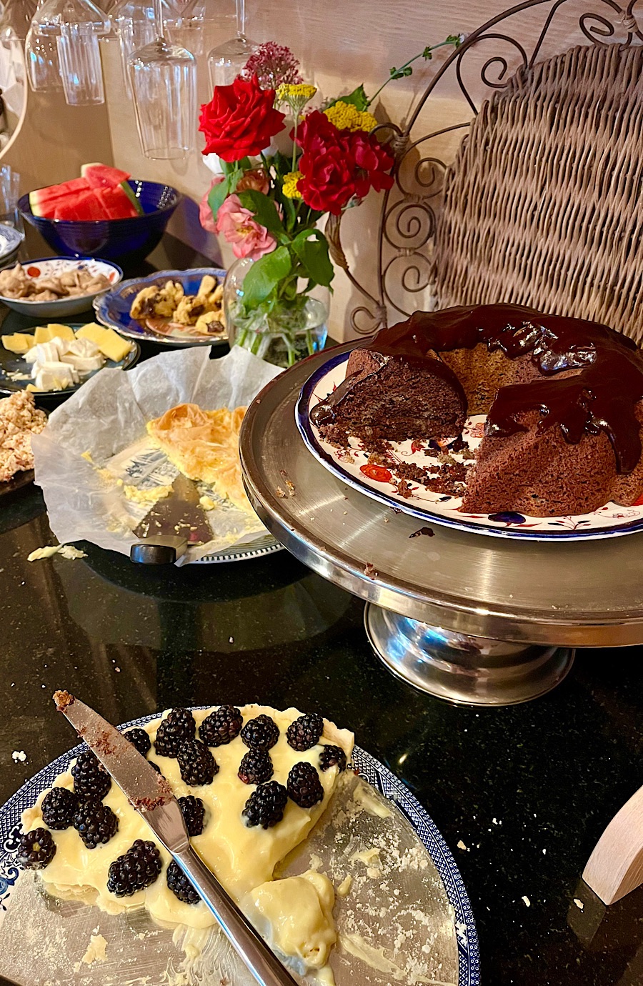 Here were the recipes this time. They were all pretty good, but I think the favorites were the blackberry tart and the buckwheat cake, the latter of which is GF and vegan to boot, if you need a recipe along those lines: I do not and wouldn’t have saved it to try if I had known it was GF; I find GF baked goods generally to be a waste of my effort b/c they taste like sand. But David Lebovitz knows what he’s doing.