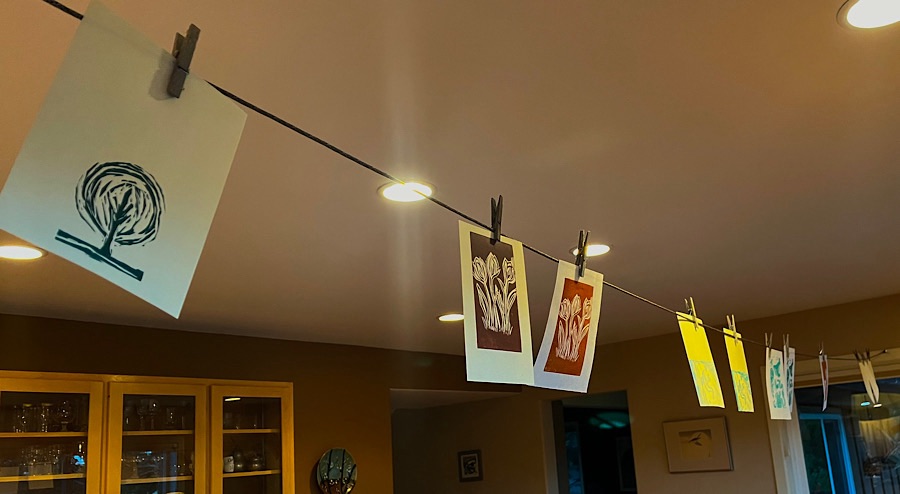 The linocuts were really fun. We cut our designs on soft-cut blocks, which was quick and easy, and printed both paper notecards and cotton tea-towels. Folks turned out some really amazing designs! If you want a run-down on the best inks for paper and fabric, plus other tips for linocut printing, I recommend this blog.