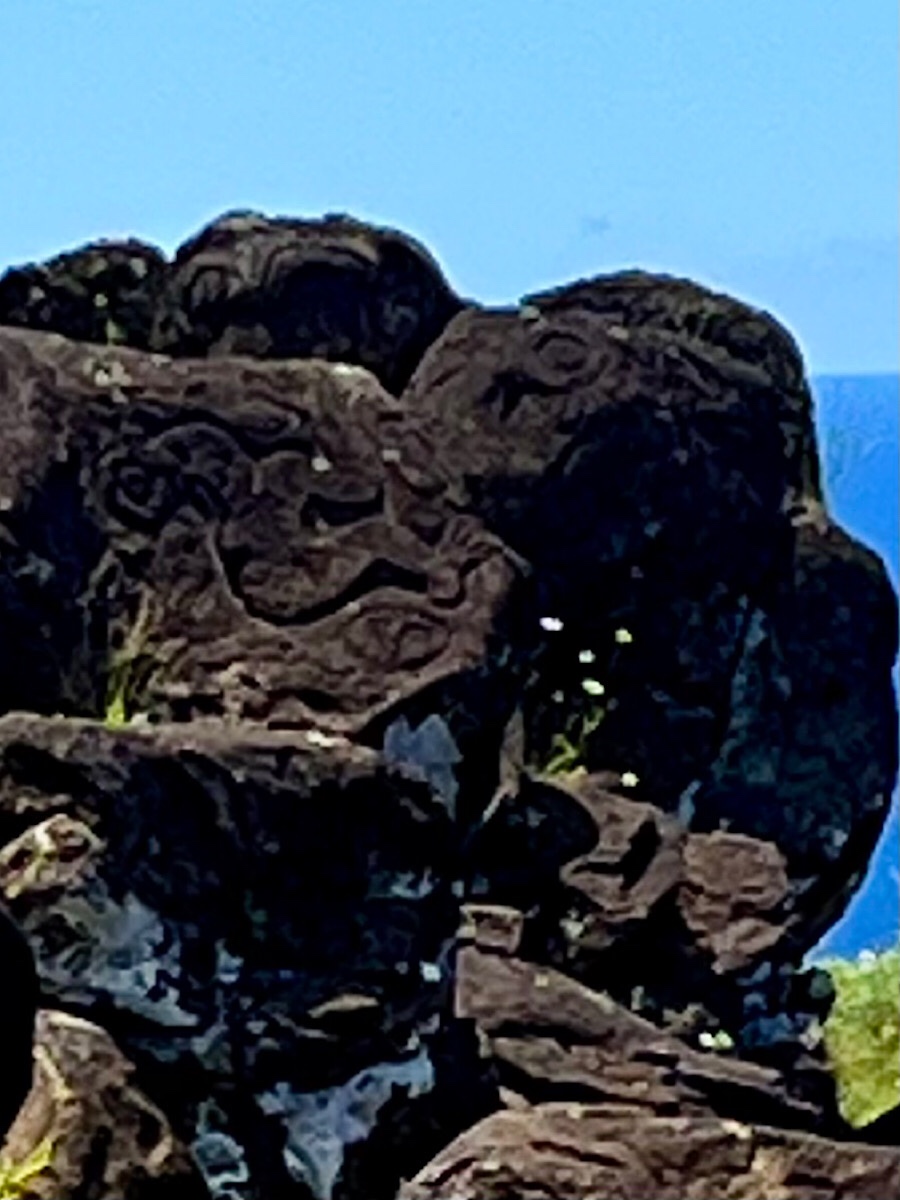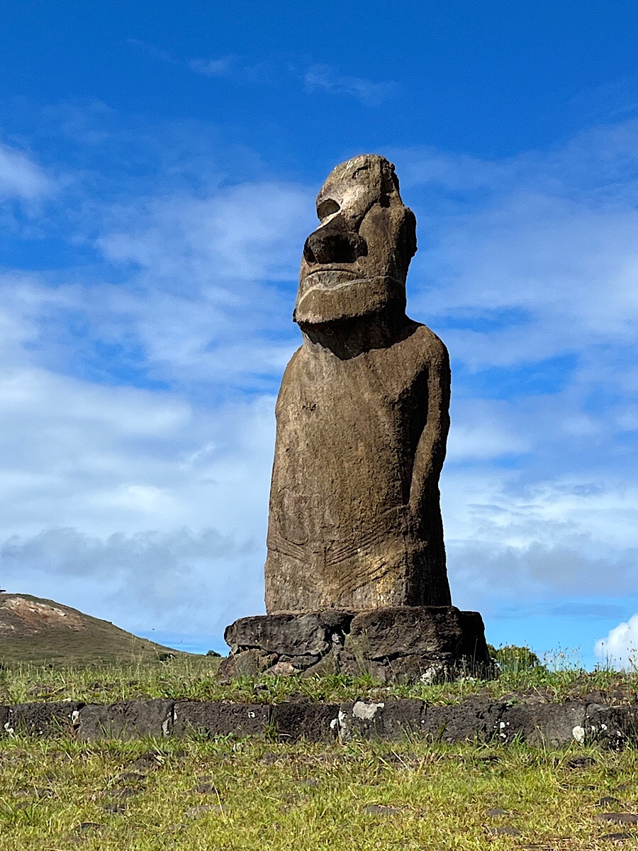Of course the moai are special—and trust me you haven’t even experienced a thousandth of their grandeur by viewing pictures of them. Some are nearly 30 feet tall, and all were hewn from the volcanic tuff with hand axes and moved (they think like you would a refrigerator if you didn’t have a dolly—kind of by turn-scooting on their bases) miles across the island into their final alignments. But even more special are the people who dreamed and engineered the moai, and they still live there and are still carving and thriving and building their future. I don’t want to say much more about the island’s history and culture because I don’t feel it’s my place to: but you can read Francisco Nahoe’s chapter in Global Rhetorics of Science to learn more, and there are websites that document Rapa Nui from an Indigenous perspective. Here I’ll just offer a some practical tips for travelers from North America and Europe.