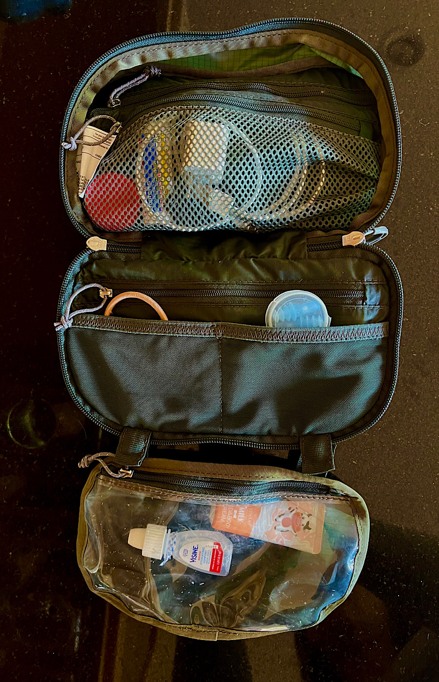 Of course if I have 15 minutes, I’m going to grab my laptop, priceless family photos, irreplaceable art, etc. But the go bag contains the non-negotiables. My comfort kit is one of them. I did a brief post on it before, mostly shilling the Osprey ultralight organizer I use and love. But I didn’t give a full rundown in that post of what I carry in the comfort kit, so here it is in case you’re interested:
