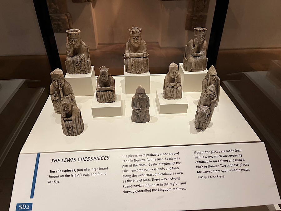 On Thursday I was particularly grateful for all the walking because I had landed at 8 in the morning, I don’t really sleep on planes, and I like to stay up until nightfall to get on the local clock. So, lots of tea and perambulation were just what the doctor ordered. I visited the National Museum with Tobie, Ian, and Polly because Polly had a science project on monkeys to do for the remote schooling she’s doing this semester while her family’s overseas. I’d never been and enjoyed poring over the Scottish treasures—like a beautiful harp gifted by Mary Queen of Scots to one of her court musicians and the winsome Isle of Lewis chessmen carved from walrus tusks—and visiting the Science & Industry pavilion with its steam presses and gorgeous lighthouse lens assemblies (for lighthouses built by the family of Robert Louis Stevenson, no less). We had a fantastic lunch at Ting Thai (though they very strangely, for any restaurant in Britain, serve no hot drinks, so no tea for me). Then, I peeled off from the family for an afternoon of sightseeing in the Old Town while they headed back to get some work done. I went straight down the Royal Mile to visit some of my favorite touristy shops from my college days, including Ragamuffin of Skye and the Scottish Experience, where I was delighted to find a replacement set of the Scottish Picture playing cards that I had worn out over the last 30 years playing cribbage (which I learned from a friend at Uni there). My feet were pretty tired from wobbling over cobbles at this point, so I sat down for a restorative cream tea at Clarinda’s Tea Room. Then, I worked my way back to Tobie & Ian’s flat—in the jaw-dropping Davidson School building, which was a deaf school designed by William Playfair, then a hospital during WWII, and now houses a suite of luxury condos. I went back out with them to look at a flat in Calton Hill (they like to look at real estate since their eventual goal is to have a place in Scotland), and then we set out in search of a pub dinner. One after another was packed or otherwise unsuitable, so we ended up walking all the way down to Leith and having a delightful seafood dinner at Dulse.