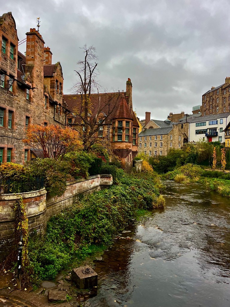 On Friday Tobie gave Ian and me our marching orders: shopping for dinner. Naturally, we used it as an excuse to travel the whole city in search of the best ingredients. We hopped a bus out to Portobello, and after standing ourselves up with a cortado from Tanifiki, we popped into Aemilia for a porchetta foccaccia for breakfast (which we ate on the Portobello Walk overlooking the Firth of Forth, watching dogs gambol on the beach) and a selection of their immaculately folded fresh filled pastas for dinner (pumpkin cappellacci with crushed amaretti and spinach-ricotta ravioli), along with some sage butter and house-made beef ragu. We stopped by Root Down to see what seasonal veg they had in stock and came away with a lovely fractal romanesco cauliflower plus some fennel and radicchio for a salad. Then we hopped back on the bus and rode it over to Stockbridge where we ducked out of the rain in a friendly little wine shop; we picked up a bottle of red for dinner and a bottle of Scottish gin to restock Tobie’s bar (a lot of the traditional whisky distilleries have been adding gins to their roster to appeal to younger palates). When it let up, we popped across the street to J. Mellis cheesemonger for a nice selection of Scottish cheeses (Mull cheddar and some nice sheep’s and goat’s cheeses I’ve forgotten the names of, plus a taleggio-like cow’s milk cheese that I think was called Dor Linn). At this point we were hungry again, so we sat down at Hector’s for a pint of hand-pumped cask ale and a truly delightful chicken and leek pie. After picking up a selection of pastries at Archipelago for dessert, we ambled back home along the Water Leith through charming Dean Village, blinking alternately at the gorgeous fall colors and at all the tourists snapping pictures of themselves in front of the fall colors for the ‘gram. Dinner was spectacular: Tobie made us some elderflower French 75’s with the Caorunn gin we had picked up; then, we had the pastas we had bought with the sage butter and ragu, the romanesco roasted with lemon, Parmesan, and bread crumbs, a fennel, orange, and radicchio salad as a palate cleanser, and our pastries for dessert. Ian and I played a bit of Highland Song on his Switch afterward, and then we turned in.