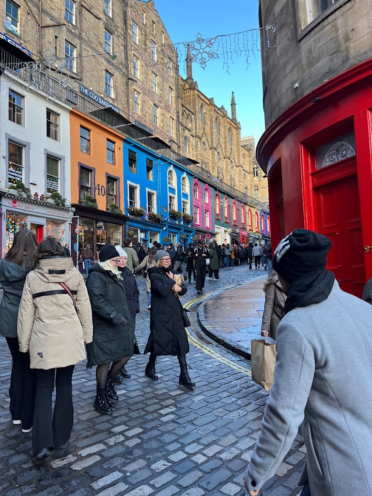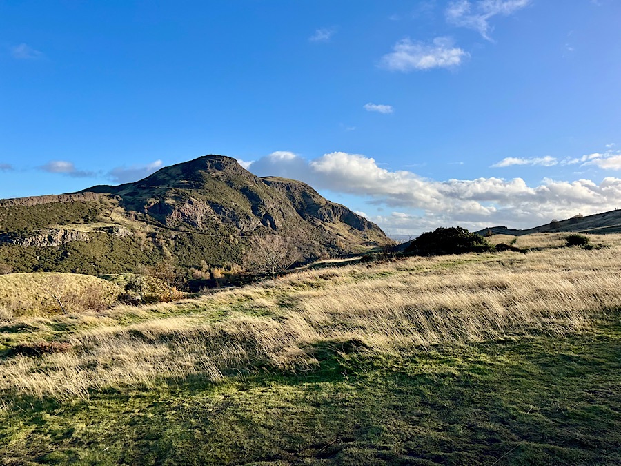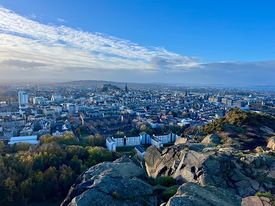 On Sunday the weather seemed promising for our planned run up Arthur’s Seat, the volcanic crag in the middle of the city where King Arthur supposedly held court in the mythic past; as a student, it was one of my favorite escapes. We took the long way round so we could queue up (for 1.5 hours!) for the delicious croissants at Lannan Bakery in Stockbridge, which we ate in the sunshine at George V park. We stopped for coffees at Santu coffee, which renovated an old washery into a very cool and surprisingly comfortable oasis, complete with Sunday morning vinyl spinning. Then, we did a bit of shopping in Lifestory, a Scandinavian lifestyle store where, as Tobie pointed out, we could have happily bought everything given funds enough and time. But we had hiking to do, and the clouds were starting to loom, so we headed on up along Prince’s Street to Holyrood Park and then up onto Salisbury Crags. At this point, Polly was fading, so we decided to cut the hike short and take in the stunning overview from the Crags, a reroute I had performed myself many a time as a student. Then, we caught the bus home in the nick of time to avoid the rain. After another quick turnaround, we headed to dinner at Scran & Scallie, a joyful upscale local on the Comely Bank of the Water Leith, where everyone seemed to be celebrating something. Then, it was back home to get packed and ready for my flight out the following morning from Edinburgh’s small, efficient airport.
