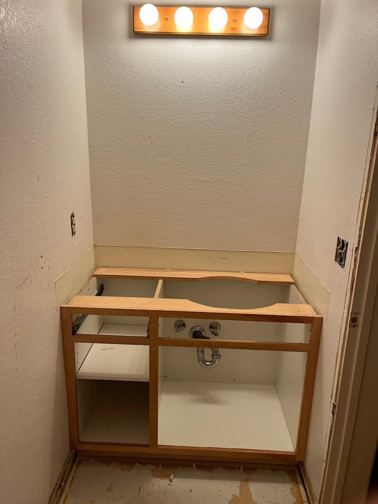 Did it go totally smoothly? No, it did not. But that’s remodeling for you. I set off the smoke alarms trying to cut the countertop to get it out, and they would NOT turn off, so I yanked them all and had to rewire and reset them at the end of the day. And I’m wearing 3 bandaids: the most spectacular injury was smashing my fingertip under the countertop, which actually sent blood splurting onto the vinyl floor, ha ha. But I’m typing with that finger now, so shrug emoji. Blood sacrifice for the remodeling gods.