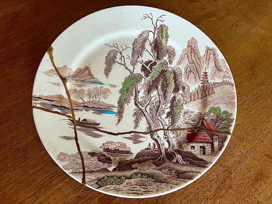 Enter rabbit hole. Because traditional kintsugi is a process that uses a tree resin related to poison ivy and takes a month or so to complete. Fortunately, rabbit holes are my natural habitat, as you know if you read this blog at all.