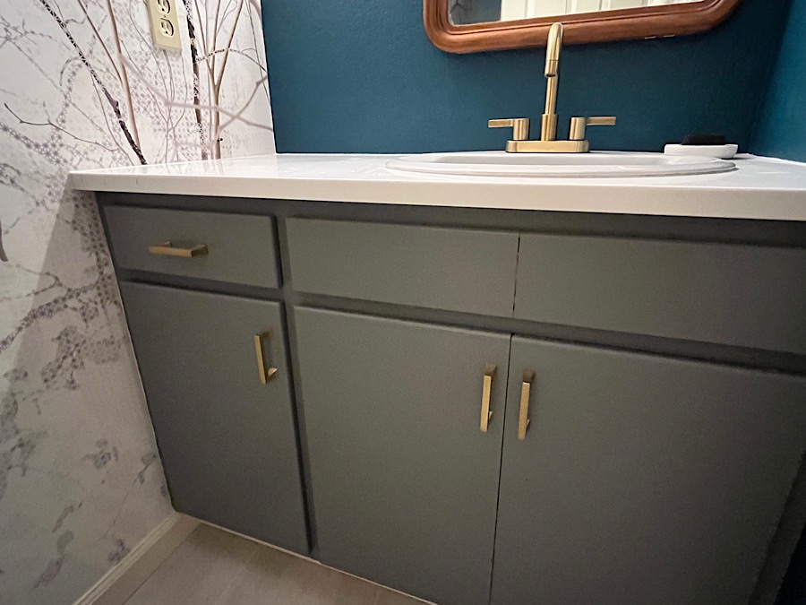 You guys…I’m super happy with how this turned out. It ain’t perfect, for sure. But overall it turned out like I imagined—better even because I didn’t know I’d find that amazing light fixture at Habitat for Humanity for $20 and the pulls for $1 apiece. And my sister recommended painting the non-mural walls a funContinue reading “Powder Room Remodel: Days 13-15 (Fin)”